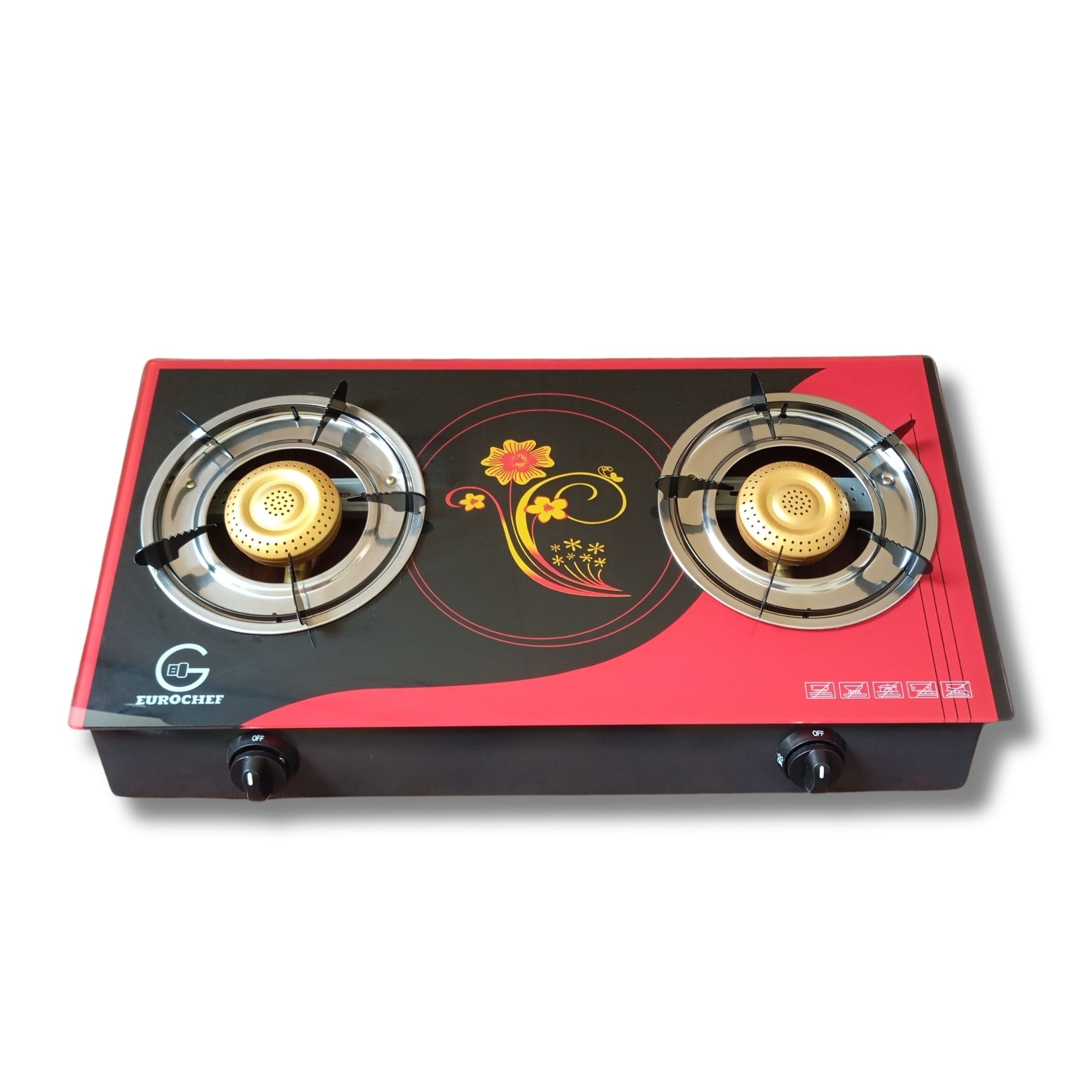 Get the best for your kitchen – a EUROCHEF glass-top gas stove that’s guaranteed to perform beautifully. Available with different combination of burners 2 the gas top for the kitchen are made of 8mm toughened glass that gives it a clean and classic look. The brass burners make cooking fast and fuel efficient. Ergonomically designed knobs help to easily adjust flame intensity and the sturdy pan supports ensure that your cookware remains steady throughout the cooking process. The gas-stoves also come with a cleaning pin that makes it easy to clear clogged burner holes.